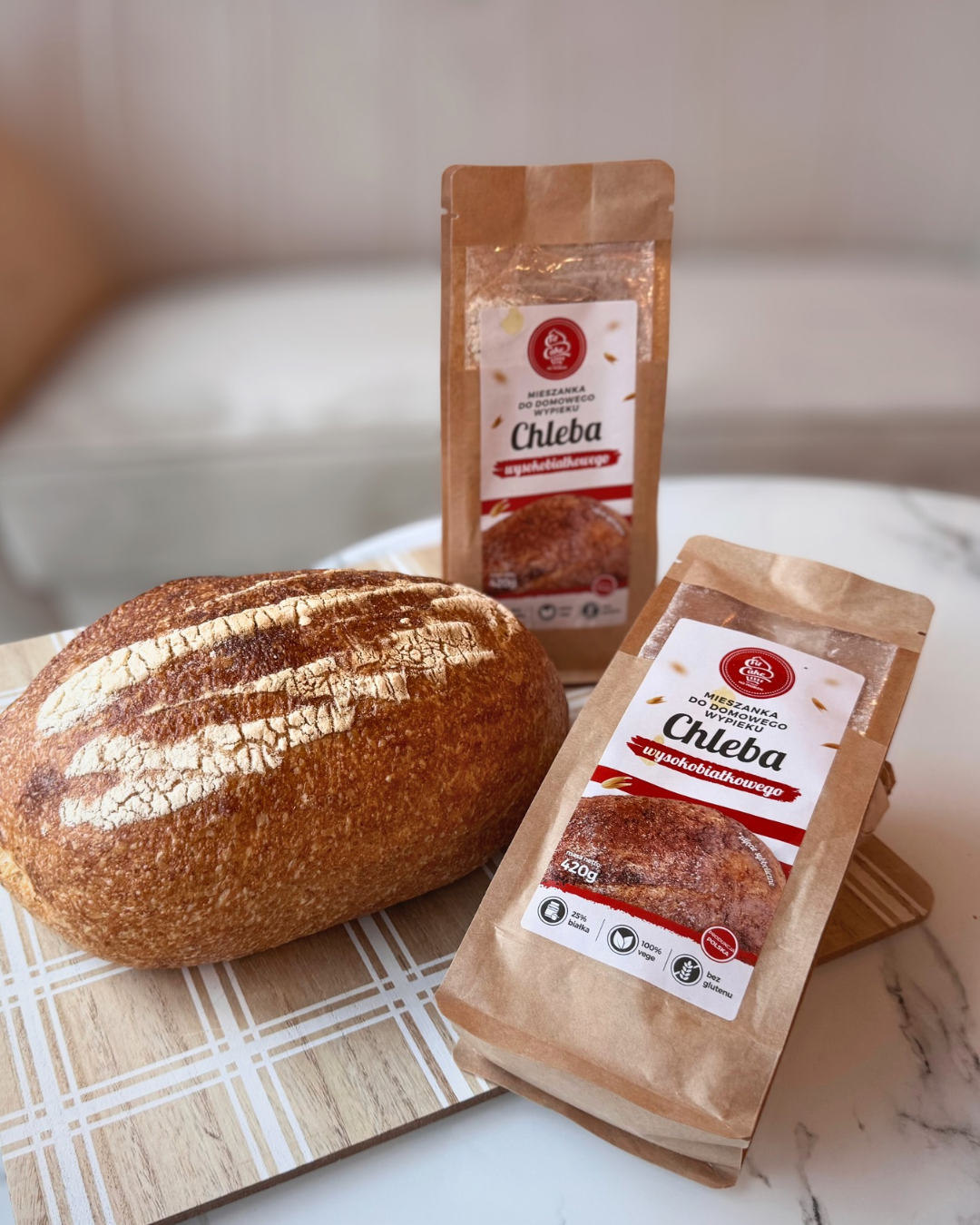 Trzecią nowością produktową jest wysokobiałkowa mieszanka do chleba. Produkt skierowany jest do klientów, którzy chcą samodzielnie wypiekać zdrowe pieczywo w warunkach domowych, bez konieczności kompletowania wielu składników. Mieszanka wpisuje się w rosnący trend domowego wypieku oraz zapotrzebowanie na produkty wysokobiałkowe, szczególnie wśród osób aktywnych fizycznie i dbających o zbilansowaną dietę.