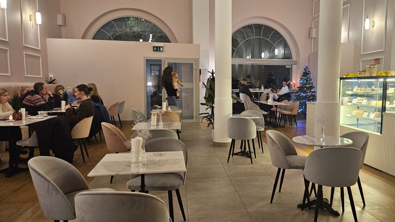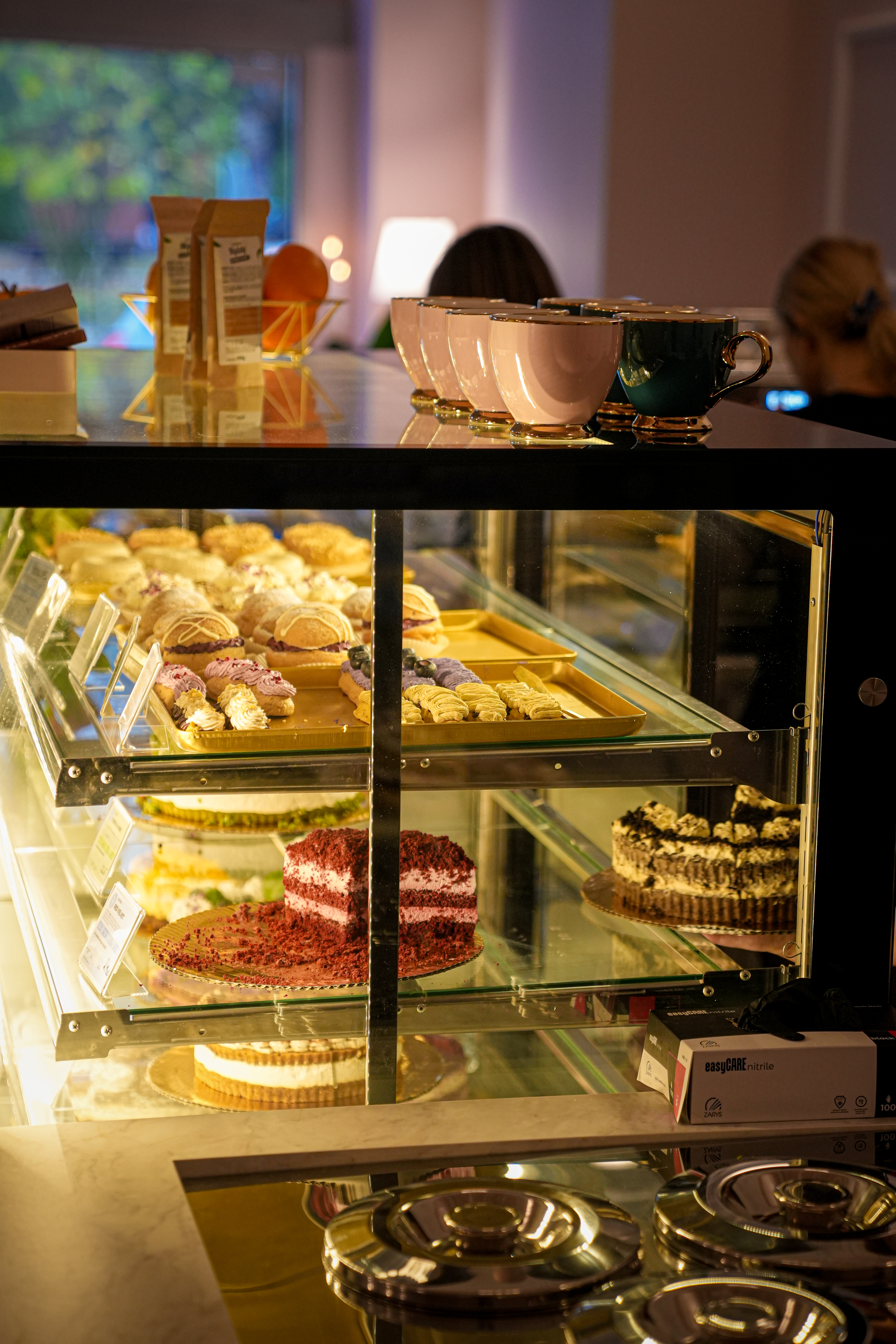 Kawiarnia wyróżnia się nie tylko ofertą, ale i wnętrzem. Elegancki wystrój ze złotymi detalami, różowymi akcentami, wysoki strop, gotyckie kolumny i sztukaterie tworzą wyjątkową atmosferę. To połączenie estetyki z funkcjonalnością – piękne miejsce, w którym można bezpiecznie sięgnąć po słodkości.